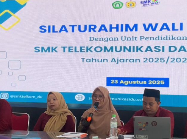 SMK TELEKOMUNIKASI DARUL ULUM, Mengawali tahun ajaran 2025/2026, sekolah menggelar rapat wali murid yang dilaksanakan pada Sabtu, 23 Agustus 2025. Acara yang dipimpin langsung oleh Kepala Sekolah, Ibu Nur Laila, S.Pd., ini menjadi momentum penting untuk mempererat hubungan antara pihak sekolah dan para orang tua/wali siswa.
